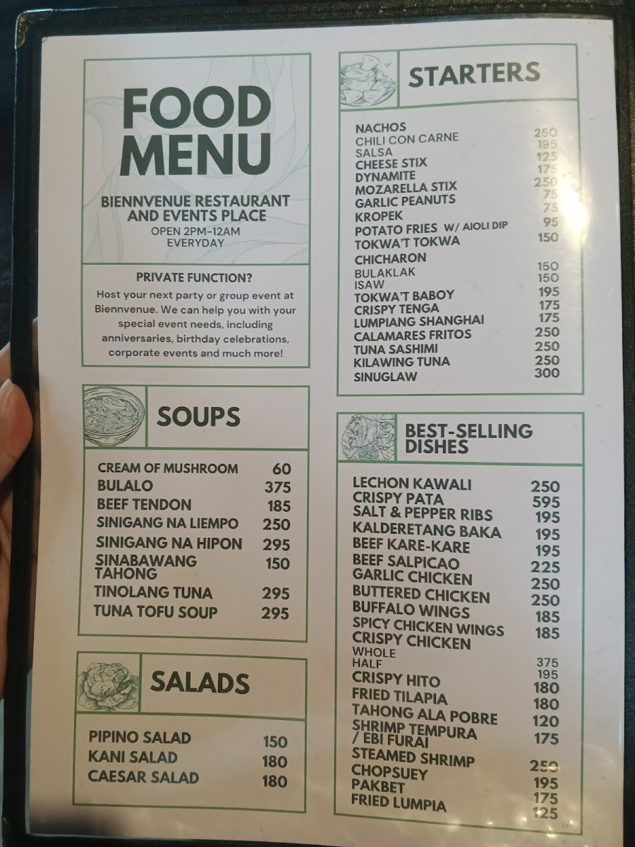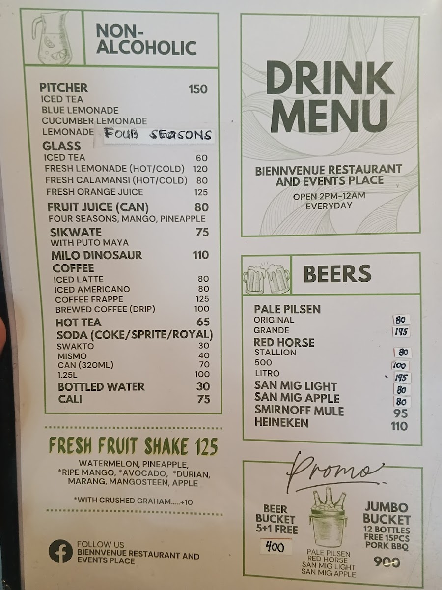 Welcome to Biennvenue Restaurant and Events Place, a delightful Asian restaurant nestled in Kidapawan, Cotabato. This charming venue not only caters to culinary enthusiasts but serves as a versatile space for events. The menu boasts a rich array of dishes, clearly reflecting the cultural taste of the region. From the savory tofu paired perfectly with vegetable lumpiang, to the enticing crispy pata, each dish is crafted with care. Many patrons rave about the restaurant's fresh fruit shakes, offering vibrant flavors like mango and avocado that are a must-try. Guests also appreciate the friendly service and inviting ambiance, making it a perfect spot for family gatherings or romantic dinners. Despite minor wait times, the quality of food and atmosphere make every visit truly worthwhile. If you're looking for a place to relax and enjoy delightful Asian cuisine, Biennvenue awaits your presence!